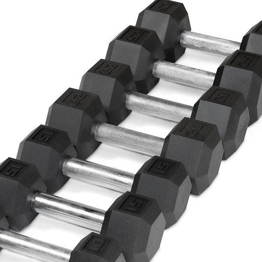 5-25Lb Rubber Coated Hex Dumbbell Set with a Frame Storage Rack Non-Slip Hex Shape for Muscle Toning, Strength Building & Weight Loss - Multiple Choices Available